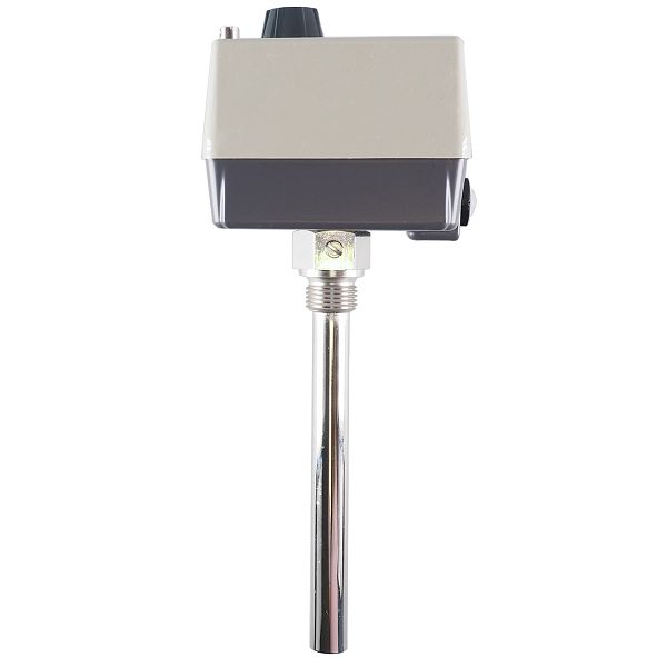 Durch sein schlagfestes Gehäuse mit hochwertigem Kunststoffdeckel und Aludruckguss Unterteil ist der mechanische Aufbaubaudoppelthermostat sehr robust und kann auch unter rauen Bedingungen eingesetzt werden. Das Gerät besteht aus einem Temperaturregler und einem Sicherheitstemperaturwächter (STW). Die Temperatureinstellung des Temperaturreglers erfolgt mit Hilfe eines Sollwerstellers auf einer Skala. Die gewünschte Abschalttemperatur des Sicherheitstemperaturwächters kann nach Abnahme des Gehäusedeckels mit Hilfe eines Schraubendrehers auf einer Skala eingestellt werden. Der Temperaturregler zeichnet sich durch eine hohe Schaltpunktgenauigkeit von +0/-1,5 % im oberen Skalendrittel aus und hat eine Schaltdifferenz (Hysterese) von ca. 3 bis 4 % des Skalenumfangs. Er schaltet nach Erreichen des Abschaltpunktes ab und nach Unterschreiten der Abschalttemperatur um den Wert der Schaltdifferenz automatisch wieder zurück in den Ursprungszustand. Der Sicherheitstemperaturwächter zeichnet sich durch eine hohe Schaltpunktgenauigkeit von +0/-5 % im oberen Skalendrittel aus und hat eine Schaltdifferenz (Hysterese) von ca. 4 bis 6 % des Skalenumfangs. Er schaltet nach Erreichen des Abschaltpunktes ab und nach Unterschreiten der Abschalttemperatur um den Wert der Schaltdifferenz automatisch wieder zurück in den Ursprungszustand. Zusätzlich hat der Sicherheitstemperaturwächter eine Selbstüberwachungsfunktion, sodass bei Zerstörung des Messsystems der Stromkreis des STW bleibend geöffnet wird. Der Schaltkontakt des STW befindet sich dann in einer Neutralstellung, sodass keine Kontakte geschaltet sind. Weiterhin wird bei Abkühlung des Fühlers auf eine Temperatur unter ca. -20 °C der Stromkreis ebenfalls geöffnet, erst bei Temperaturanstieg über ca. -20 °C wird der Kontakt wieder geschlossen. Ein entscheidender Vorteil ist es, dass zur Temperaturmessung keine zusätzliche Hilfsenergie benötigt wird. Der elektrische Anschluss erfolgt durch Schraubklemmen direkt an den verbauten Microschaltern, die eine maximal zulässige Schaltleistung von AC 230 Volt / 10 A direkt schalten können. Die verwendeten Messsysteme arbeiten nach dem Flüssigkeitsausdehnungsprinzip und können bis zu einer maximal zulässigen Fühlertemperatur von 140 °C problemlos eingesetzt werden. Das Tauchrohr aus Messing, vernickelt, hat einen Durchmesser von 15 mm. Die Befestigung erfolgt durch ein Gewinde G 1/2 Form A nach DIN 3852/2. Die maximal zulässige Umgebungstemperatur am Gehäuse (Schutzart IP54) beträgt 80 °C.Der Thermostat ist sehr flexibel einsetzbar und wird sowohl in der Heizungs-, Klima-, und Lüftungstechnik als auch in der Kunststoffindustrie, dem Apparate- und Maschinenbau sowie im Ofenbau, in Fernwärmeübergabestationen und zur Temperaturüberwachung in Labor und Klimaschränken angewandt. Das Gerät ist zugelassen gemäß DIN EN 14597 und DGRL und hat eine EAC Zulassung.