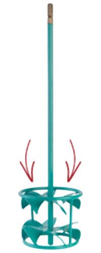 Rührer für Ausgleichsmassen Ø 90 mm, Art.-Nr. 11869 Der Rührer ist ideal für alle flüssigen und verlaufenden Materialien, wie Ausgleichsmassen Dünnbettmörtel Schlämme Klebstoffe Bitumenfreie Abdichtungen Er zeichnet sich durch seine zwei übereinander gelagerten Turbinenschaufeln aus. Sie sorgen für eine gründliche Materialströmung und verhindern Klumpenbildung.
