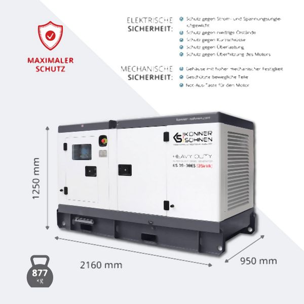 Könner & Söhnen 3-Phasen-Generator, Hubraum: 2300 cm3, Höchstleistung/Nennleistung (400V), kVA:... mehr
