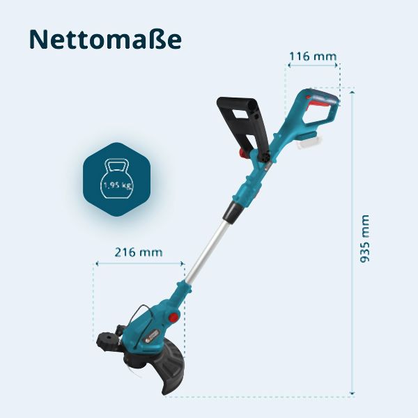 - Schnittdicke (Rasentrimmer): 1.6 mm