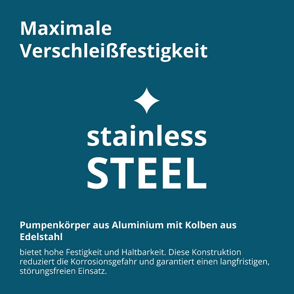 - Aluminiumgehäuse mit Edelstahlkolben – für maximale Robustheit und lange Lebensdauer