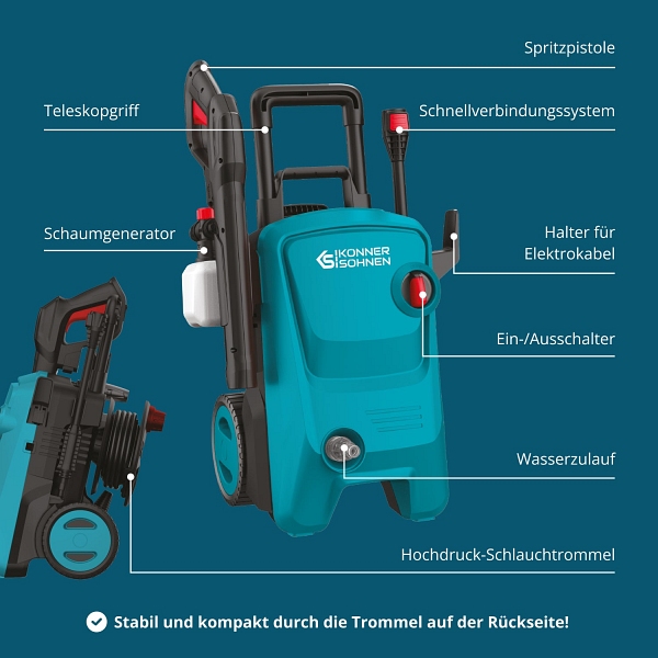 Könner & Söhnen Hochdruckreiniger, Leistung: 1800 W, KS PW145V, 4260405368655 Teleskopgriff –... mehr