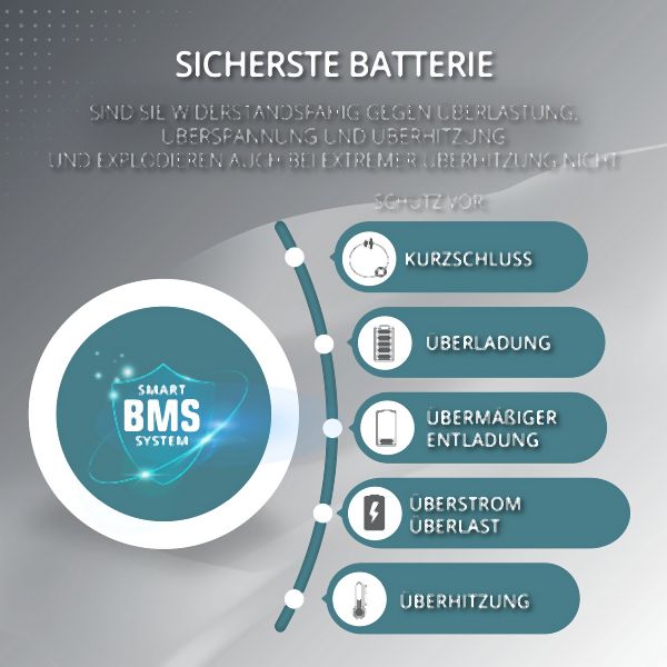 - Batterietyp: LiFePO (Lithium-Eisenphosphat-Batterie)