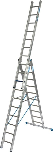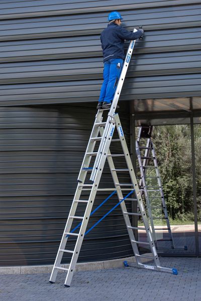 Dreiteilige Aluminium-Vielzweckleiter mit Stufen/Sprossen-Kombination für TRBS 2121-2-konforme Anwendung. Durch die neue, innovative Stufen/Sprossen- Kombination in einer Leiter kann diese als Verkehrsweg und als Arbeitsplatz verwendet werden. Einsetzbar als Anlege-, Schiebe- und Stehleiter mit ausschiebbarem und, durch die KRAUSE Trigon-Traverse, einzeln herausnehmbarem und nutzbarem Leiternteil.