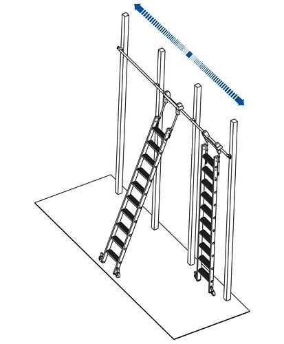- Leiterneigung 21° und in der Parkposition senkrecht am Regal platzsparend abstellbar