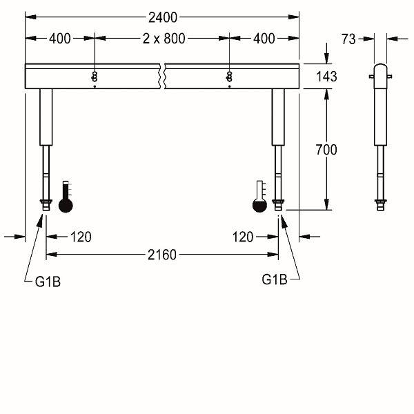 KWC Armatureneinheit, Edelstahl, doppelreihig, 6 Waschplätze, 2400 mm, Wasseranschluss unten, 2030064987