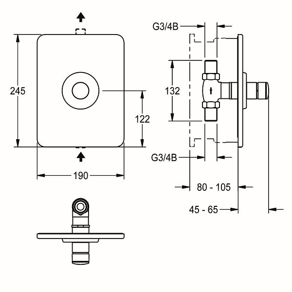 KWC Durchgangsventil, F3, hydraulisch, DN20, UP, Fertigbauset, 3600010569