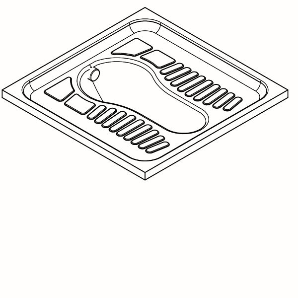 Hock-WC zur flächenbündigen Einlege oder Auflegemontage, Chromnickelstahl, Oberfläche seidenmatt, Materialstärke 1,2 mm, Ablauf DN 100, Abgang nach unten, Stehfläche mit Profil für besseren Halt. Mit Spritzkopf für 40 mm (D) Anschluss Abmessungen 700 x 235 x 700 mm (B x H x T)