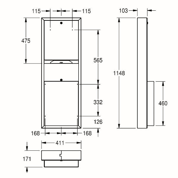 KWC Papierhandtuch-, Abfallbehälter-Kombination, Rodan, Edelstahl, 411x1148x171 mm, für Aufputzmontage, 23 l, 2000090059, 7612210067136