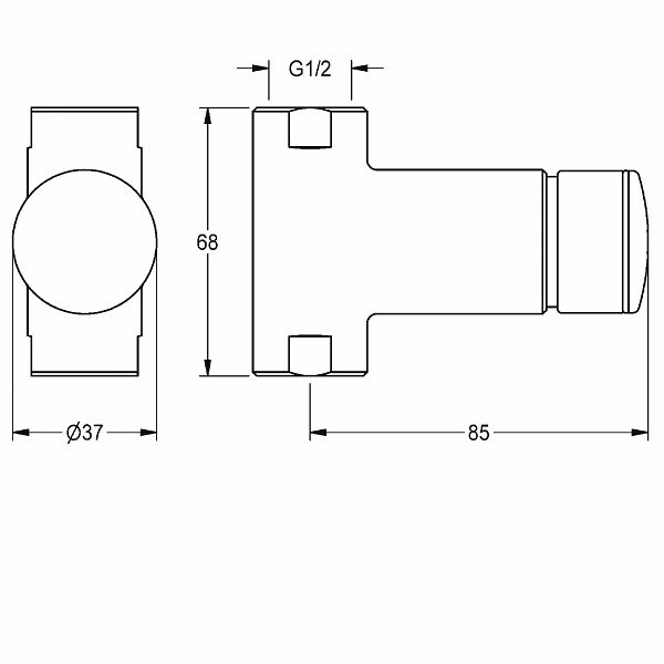 KWC Selbstschluss-Durchgangsventil, F3, hydraulisch, ohne Mischung, Aufputz, 2xG1/2, 2030037525, 7612982241062