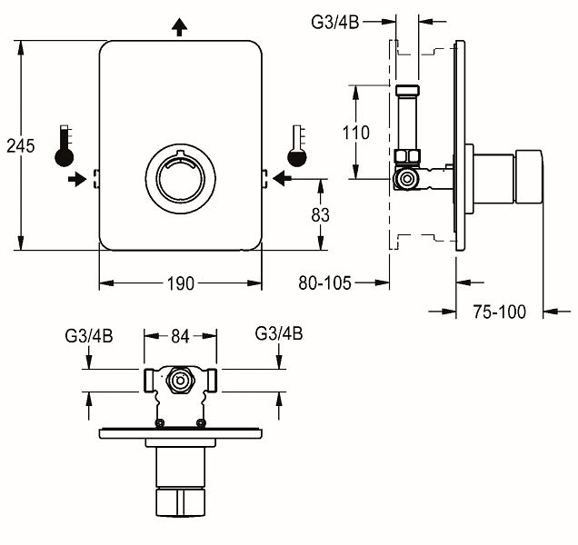 KWC Selbstschluss-Einbaubatterie, F3, hydraulisch, Mischer, Unterputz, Fertigbauset, 2030040074, 7612982245077