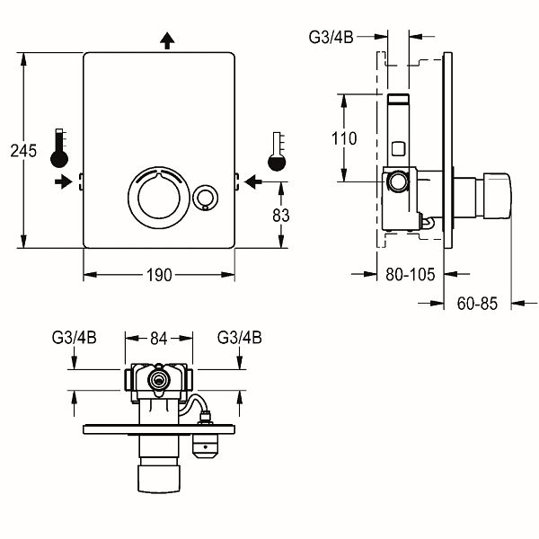 KWC Selbstschluss-Einbaubatterie, F5, hydraulisch, Mischer, Unterputz, Fertigbauset, mit automatischer Brauserohrentleerung, 2030036693, 7612982239687