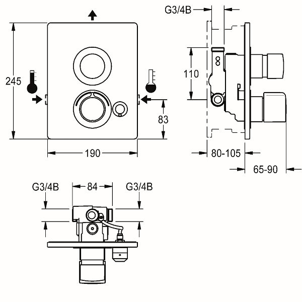 KWC Selbstschluss-Thermostat-Einbaubatterie F5, hydraulisch, UP, Fertigbauset, ohne Hygieneoption, ABE, 2030067167, 7612982293429