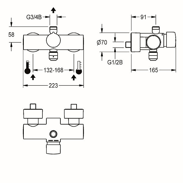 F5S-Mix Selbstschluss-Wandbatterie DN 15 als Eingriffmischer zur Aufputzmontage, für Duschanlagen. FRAMIC Selbstschluss-Mischkartusche, hydraulisch gesteuert, wartungsarm und stagnationsfrei, mit Keramikscheibentechnik, selbsttätig schließend, fließdruckunabhängig durch mediengetrennte Bauart. Fließzeit stufenlos einstellbar. Mit einstellbarem und verdrehsicherem Temperaturanschlag. Zum Anschluss an Warm- und Kaltwasser. Gehäuse mit Abgang nach oben, G 3/4 B, zur Montage von Abgangsbogen oder Aufputzduschrohr. Ganzmetallausführung, Messing poliert verchromt. Mit verstellbaren und absperrbaren Anschlüssen mit Rückflussverhinderern und Sieben, vollständig abgedeckt durch tiefenverstellbare Schraubrosetten. Ausführung mit automatischer Brauserohrentleerung.