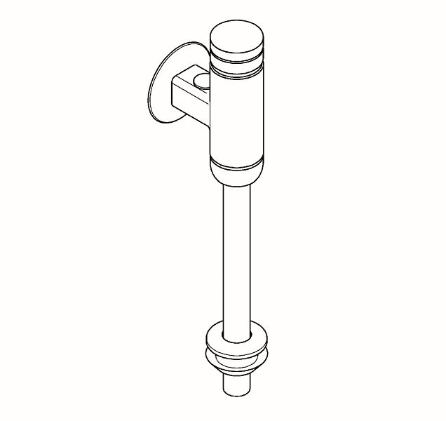 Aqualine-Urinaldruckspüler DN 15 für Aufputzmontage, Spülmenge und Volumenstrom einstellbar, mit absperrbarer Wassermengenregulierung, Einlaufrohr und Verbinder. Messing poliert verchromt, Druckkappe und Verschraubung aus Kunststoff verchromt.