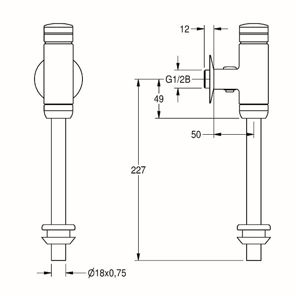 KWC Urinaldruckspüler, Aqualine, hydraulisch, DN15, Aufputz, 2000065995