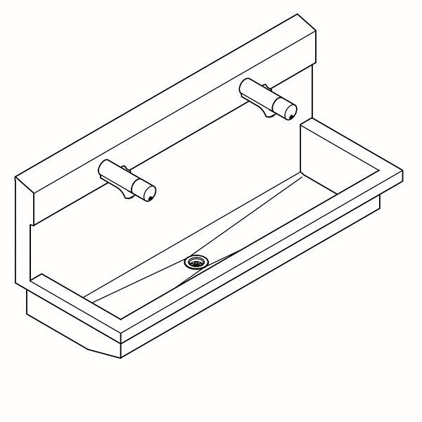 PLANOX Waschplatzeinheit mit fugenlos verschweißter Rinne, mit 2 Waschplätzen, für Wandmontage, zum Anschluss an Warm- und Kaltwasser von hinten rechts oder links. Gehäuse aus Edelstahl, Oberfläche seidenmatt, Materialstärke 1,5 mm. Ablauf mittig, Siebventil G 1 1/2 B, inklusive Befestigungsmaterial. Anschlussfertig, mit montierten F5E-Mix Elektronik-Waschplatzbatterien, opto-elektronisch gesteuert, Auslösung über Handreflexion. Steuerelektronik, Magnetventilkartusche, 6 V Lithium Batterie (CR-P2) und Sensor im Ganzmetallgehäuse, Messing poliert verchromt. Temperaturwahlhebel mit einstellbarem, verdrehsicherem Temperaturanschlag. Diebstahlhemmender Luftsprudler, Bauform SLIM, mit integriertem Durchflussmengenregler 5,0 l/min. Aktivierte Hygienespülung 24 Stunden nach letzter Betätigung, Sicherheitsabschaltung bei Dauerreflexion und Speicherung von Statistikdaten. Mit Möglichkeit der Parametrierung und Kommunikation über optionale bidirektionale Fernbedienung