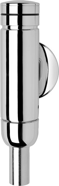 Aqualine-WC-Druckspüler DN 15 für Aufputzmontage, Spülmenge und Volumenstrom einstellbar. Messing poliert verchromt, Betätigung und Verschraubung aus Kunststoff verchromt.