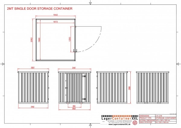 - 2m Blechcontainer mit Einflügeltür 2,14x2,02x2,09 Meter