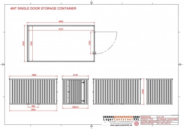 - 4m Blechcontainer mit Einflügeltür 3,88x2,14x2,09 Meter