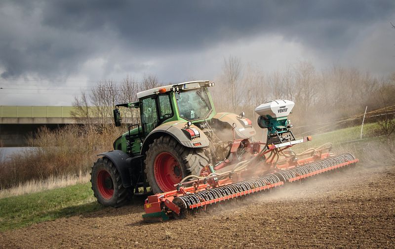Mit dem Pneumatikstreuer VENTO® können – dank seines stufenlos regelbaren, extra starken 12 Volt Gebläses – Mischungen aus feinem und grobem Saatgut, Zwischenfrüchte, Schneckenkorn, Mikrogranulate, Dünger und Gräser wesentlich effizienter und kostengünstiger ausgebracht werden, als mit einer Hydrauliklösung. Auch hohe Aussaatmengen (z.B. 40kg/ha Gras oder 120kg/ha Saatgut) meistert der VENTO® problemlos. Alle Funktionen und Einstellungen lassen sich am VENTO II Bedienteil bequem von der Fahrerkabine aus steuern und während der Fahrt verändern. Je nach Ausführung des VENTO® lassen sich mühelos Arbeitsbreiten von 1 – 6 bzw. 12 m erzielen.