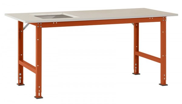 Manuflex Packtisch PACKPOOL Standard mit Platten-Ausschnitt für Waage, BxTxH = 2000 x 800 x 760-870 mm, Rotorange, AS0041.2001, 4045916868722