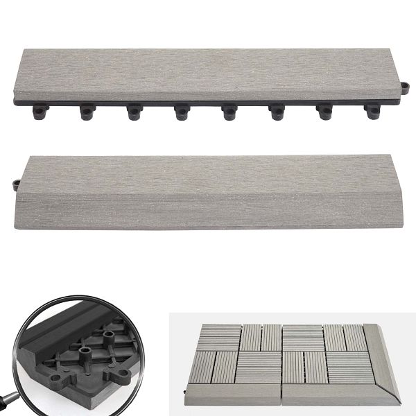 Mendler 2er-Set Abschlussleiste für WPC Bodenfliese Rhone, Abschlussprofil, Holzoptik Terrasse, grau gerade mit Haken, 65097, 4057651296999