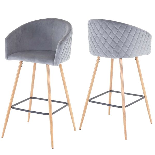 Mendler 2er-Set Barhocker HWC-D72, Barstuhl Tresenhocker Küchenhocker mit Lehne, Metall Holzoptik, Samt, grau, 64201, 4057651288239