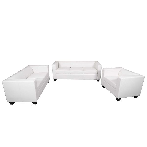 Mendler 3-2-1 Sofagarnitur Couchgarnitur Loungesofa Lille, Kunstleder, weiß, 22428, 4052826005062