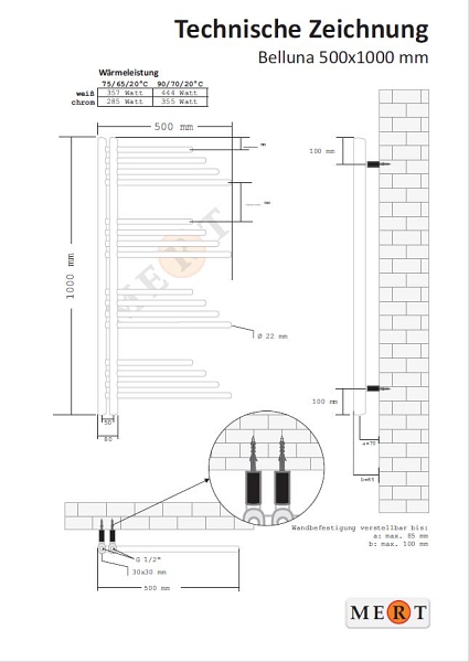 - Leistung 75/65/20°C: 285 Watt