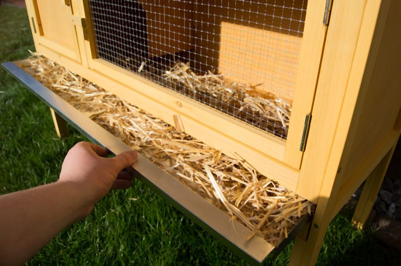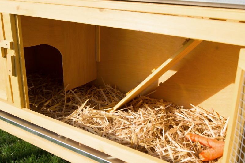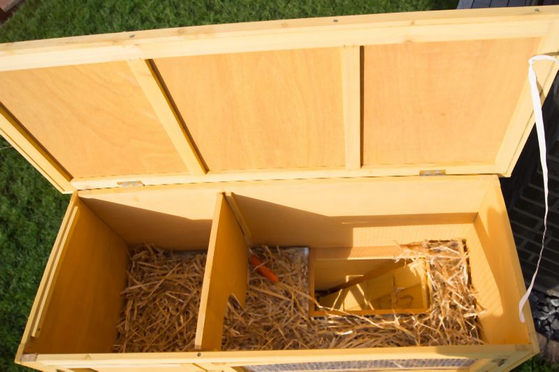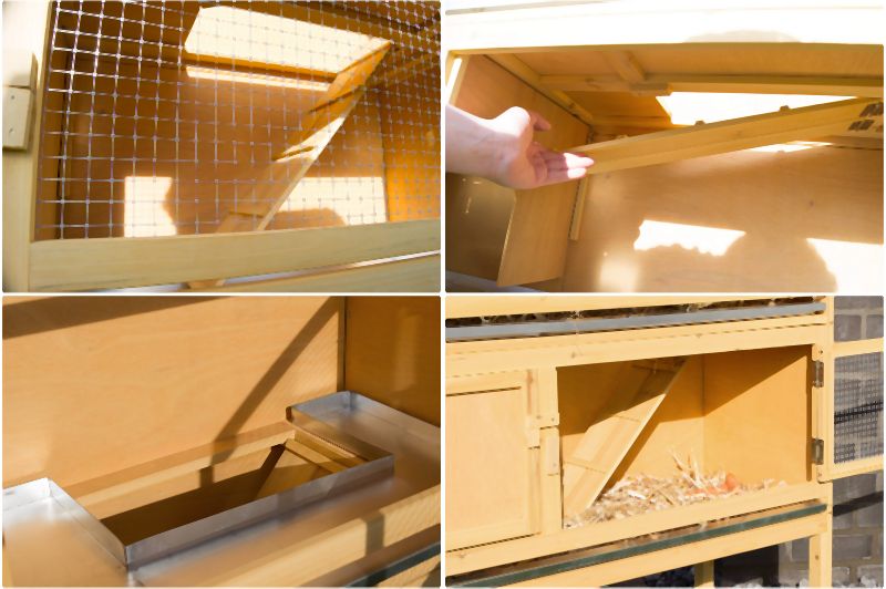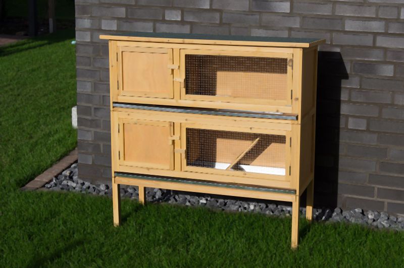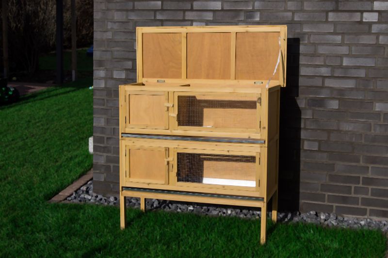 Ein pfiffiges Paradies für Ihre Kleintiere. Dieser doppelstöckige Stall hat das was Sie brauchen. Beide Stockwerke sind über eine Treppe verbunden. Diese können Sie bei Bedarf hoch oder herunterklappen. Das Dach können Sie komplett öffnen. Auch die Zinkwannen lassen sich zum reinigen einfach entnehmen. Auch von Vorteil ist die Verarbeitung des Gitter. Diese sind im Holz eingefasst, so das keine Spitzen enden herausstehen, und Ihre Tiere verletzten könnten. Also nicht einfach nur "draufgenagelt".