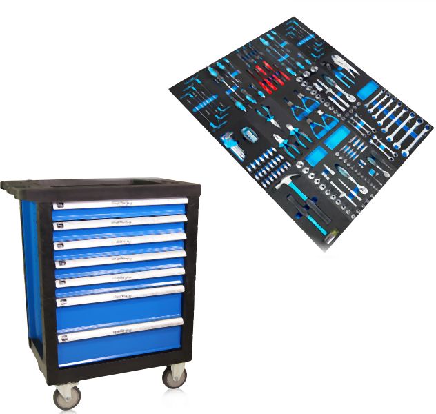 Metra Werkstattwagen, gefüllt mit 14 Sätzen Werkzeug, blau, 9910240