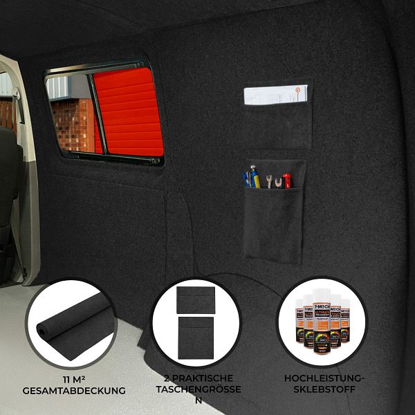 Ob zur Verbesserung des Komforts, zur Pflege Ihres Fahrzeugs oder zur optimalen Nutzung des Stauraums – unser anthrazitgraues Set aus Autostoff, Aufbewahrungstaschen und Kleber ist die ideale Lösung für jedes Fahrzeug.