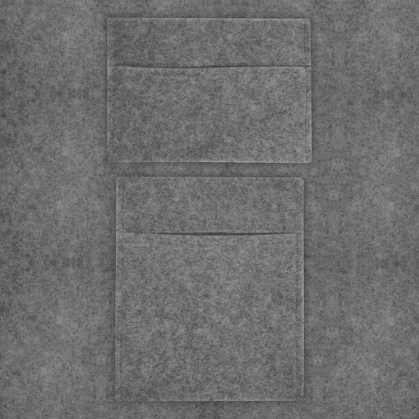 Das Set beinhaltet zwei praktische Aufbewahrungstaschen in passendem Rauchgrau. Eine Tasche eignet sich perfekt für Werkzeuge und Kleinteile, während die andere Platz für A4-Dokumente bietet.