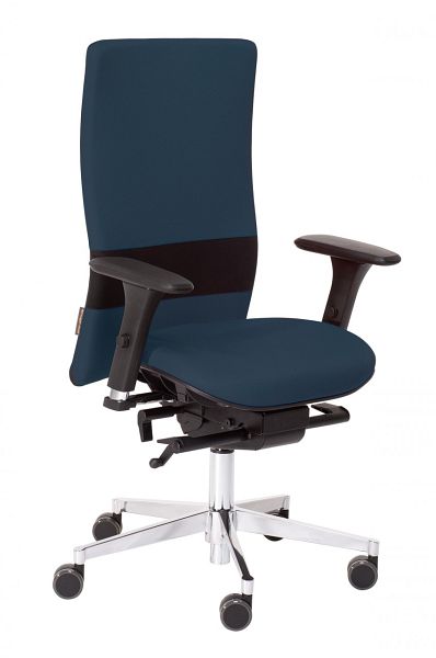 Synchron / Asynchronmechanik (Sitzfläche und Rückenlehne lassen sich unabhängig von einander freistellen und fixieren) mit zusätzlicher Option von Synchronbewegungen. (Verhältnis 5:2, Rücken/Sitz) 27° Rückenlehnen Öffnungswinkel. Sitzneigung um 6° Synchronbewegungen sowie „free-floating“ (frei bewegliche Sitzfläche für dynamisches Sitzen) Sitzfläche ist in jeder Position zu arretieren. Federkraft der Rückenlehne per Kurbel stufenlos für Personen von ca. 40 Kg. Bis ca. 120 Kg. einstellbar.