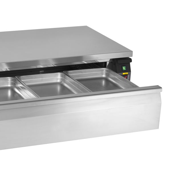 - 2 x Schublade für 3 x GN 1/1, gekühlt, mit Magnetdichtung, leicht wechselbar, belastbar bis kg: 60