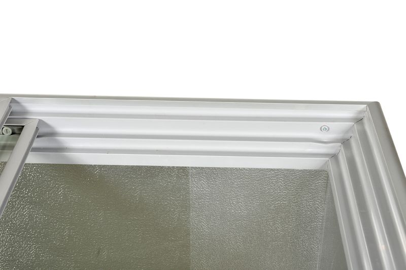 - Glasschiebedeckel, Aluminiumrahmen, Griff (pro Deckel), Vorbereitung für Schloss