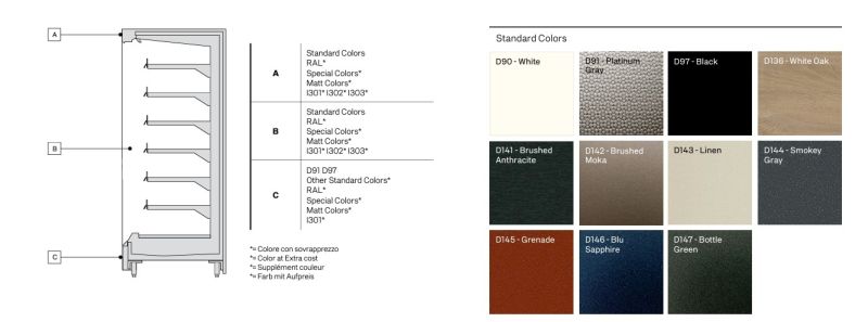 Lieferung im stabilen Holzverschlag. Frontblenden, Frontleiste und Seitenteile auch in anderen RAL-Farbtönen (teilweise gegen Aufpreis) lieferbar. Auch in einer Bautiefe 720 oder 1080 mm und in einer Höhe von 2180 mm auf Anfrage lieferbar. Auch mit abweichendem Expansionsventil (werksseitig, gegen Aufpreis) auf Anfrage lieferbar.