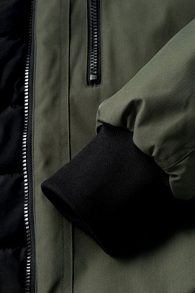 • Strickbündchen an den Ärmeln und am Bund