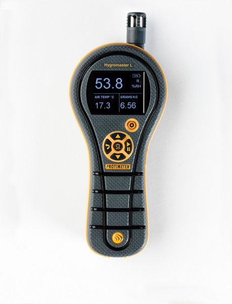 Der Hygromaster L misst die Umgebungsfeuchte und -temperatur, den Taupunkt und die spezifische Luftfeuchtigkeit. Außerdem verfügt er über einen austauschbaren Feuchtigkeits- und Temperatursensor. Dieses Messgerät eignet sich ideal für die Sanierung von Hochwasserschäden, die Vermessung von Gebäuden sowie die Messung der Feuchtigkeit von Beton und Betonböden (in situ).