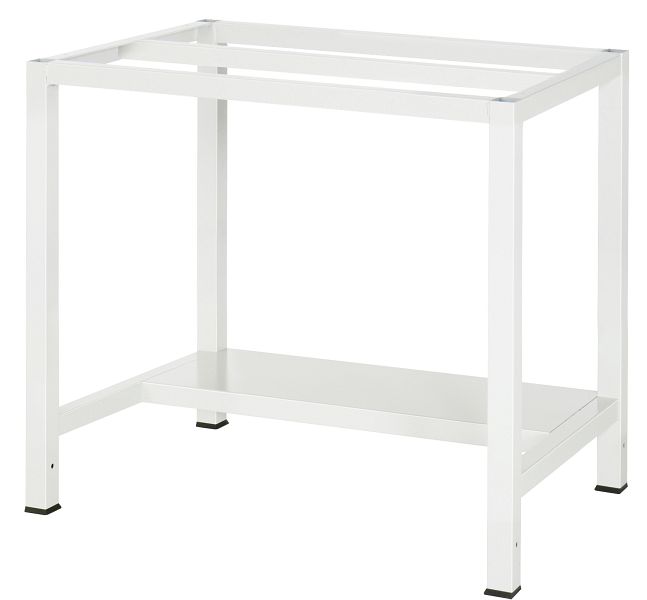 - Systemunterbau, B 995 x T 750 x H 800 mm. 4-Fuß Schweißgestell mit zwei Gestellfußpaaren aus Profil-Stahlrohr (45x45x2 mm) inkl. Tiefenverstrebungen (oben und unten). Gestellfüße unten mit Abschlusselement inkl. Anti-Rutsch-Noppe für sicheren Stand. Querstreben aus C-Profil (40x40x2 mm) oben unter der Arbeitsplatte (vorne, mitte, hinten) sowie Ablageboden unten (Tiefe 320 mm, hinten bündig mit Systemunterbau, Fachhöhe 620 mm)