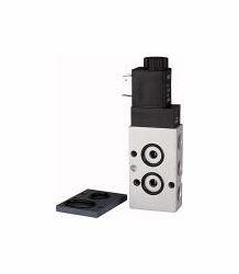 3/2-5/2-Wegeventil NAMUR, Luftfeder, Alu eloxiert, Betriebstemperatur max. 50 C, Arbeitsdruck 1,5-10 bar, Anschluss G 1/4, 230 V, 50Hz. Vorgesteuertes 3/2-5/2-Wegeschieberventil mit Gewindeanschlüssen und Lochbild nach NAMUR in federraumbelüfteter Ausführung. Durch Hinzufügen der im Lieferumfang enthaltenen Adapterplatte wird das Ventil zu einem 3/2-Wegeventil.