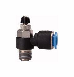 Drosselrückschlagventil Blaue Serie, Abluftdrosselung, R 1/8 a, f. Schlauch-Außendurchmesser 4 mm, Arbeitsdruck max. 15 bar, Kunststoff/MS vern.. Unsere Schnellsteckverbinder-Serie aus Kunststoff bzw. vernickeltem Messing. Die Teile sind einsetzbar in Verbindung mit Kunststoffschläuchen und Kupferrohren.