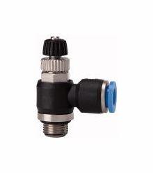 Drosselrückschlagventil Blaue Serie, Abluftdrosselung, G 1/8 a, für Schlauch-Außendurchmesser 8 mm, Arbeitsdruck max. 15 bar, Kunststoff/MS vern.. Unsere Schnellsteckverbinder-Serie aus Kunststoff bzw. vernickeltem Messing. Die Teile sind einsetzbar in Verbindung mit Kunststoffschläuchen und Kupferrohren.