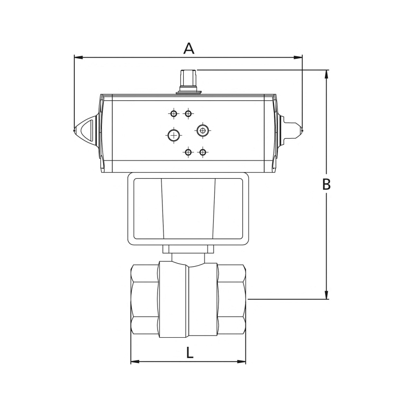 Edelstahl-KH, pneum. Stellantrieb nach NAMUR, doppeltwirkend, Betriebstemperatur KH -20 °C bis +150 °C, Rp 3/8, DN 10, PN max. 100 bar. Edelstahlkugelhahn mit pneumatischem Stellantrieb. Pneumatischer Doppelkolbenschwenkantrieb, Doppelschwingenprinzip.