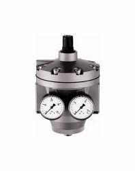 Hochleistungsdruckregler mit 2 Manometern, G 1 1/2, Regelbereich 0,1 - 3 bar, PE max. 25 bar, Mediums-UmgebungsTemperatur max. 60 C. Vordruckunabhängiger, intern pilotgesteuerter Membrandruckregler mit Sekundärentlüftung / für sehr große Durchflussmengen. Getrennte Anzeige von Eingangs- und Arbeitsdruck durch 2 Manometer. Druckeinstellung kann durch Eindrücken des Handrads arretiert werden.