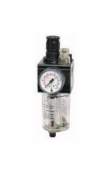 Kombi-Wartungseinheit mit Polycarbonatbehälter und Handablassventil, BG 2, G 1, PE max. 16 bar, Regelbereich 0,5 - 16 bar. Filter, Druckregler und Nebelöler in einem Gerät vereinigt, extrem platzsparende Bauweise. Druckeinstellung kann durch Eindrücken des Handrads arretiert werden. Öleinfüllung unter Druck möglich.