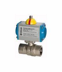 2-Wege-Messingkugelhahn, pneumat. Stellantrieb doppeltwirkend, Messing vernickelt, Betriebstemperatur max. 70 C, Rp 1/2, DN 15, PN max. 40 bar. 2-Wege-Hahn, voller Durchgang. Pneumatischer Schwenkantrieb in doppelt- oder einfachwirkender Ausführung und integriertem Stellungsanzeiger.