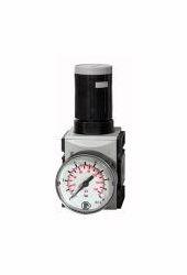 Präzisionsdruckregler FUTURA, inkl. Manometer, BG 1, G 1/4, PE max. 16 bar, Temperatur -10 °C bis 50 C, Regelbereich 0,1 - 2 bar. Präzisions-Membrandruckregler mit Sekundärentlüftung in modernem Design und mit hervorragenden Durchflusswerten zur Erreichung eines äußerst präzisen Arbeitsdrucks. Arretierbarer und abschließbarer Regelknopf.
