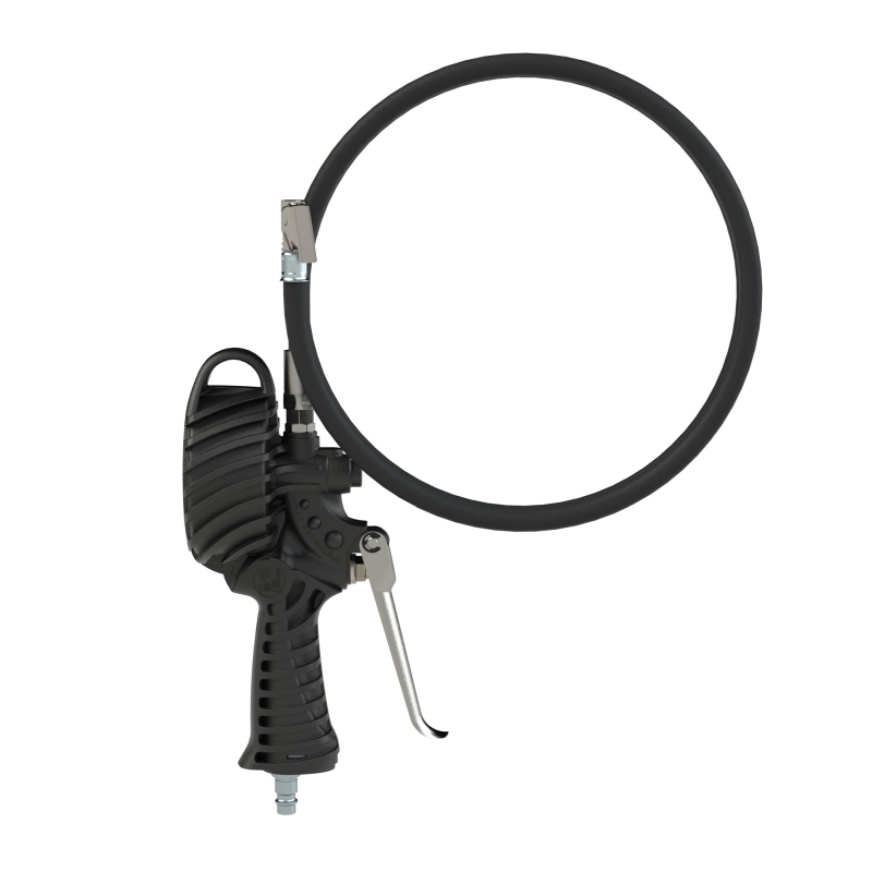 Standard-Handreifenfüllmesser mit Momentstecker, 3 m Schlauch drehbar, Mano Ø 80 mm, ungeeicht, 0-12 bar/170 psi, Stecknippel NW 7,2. Robuster Standard-Handreifenfüllmesser mit vollgummierter Schutzhülle, Druckmanometer mit bar- und psi-Anzeige. Mit Stecknippel für Kupplung NW 7,2 - 7,8.